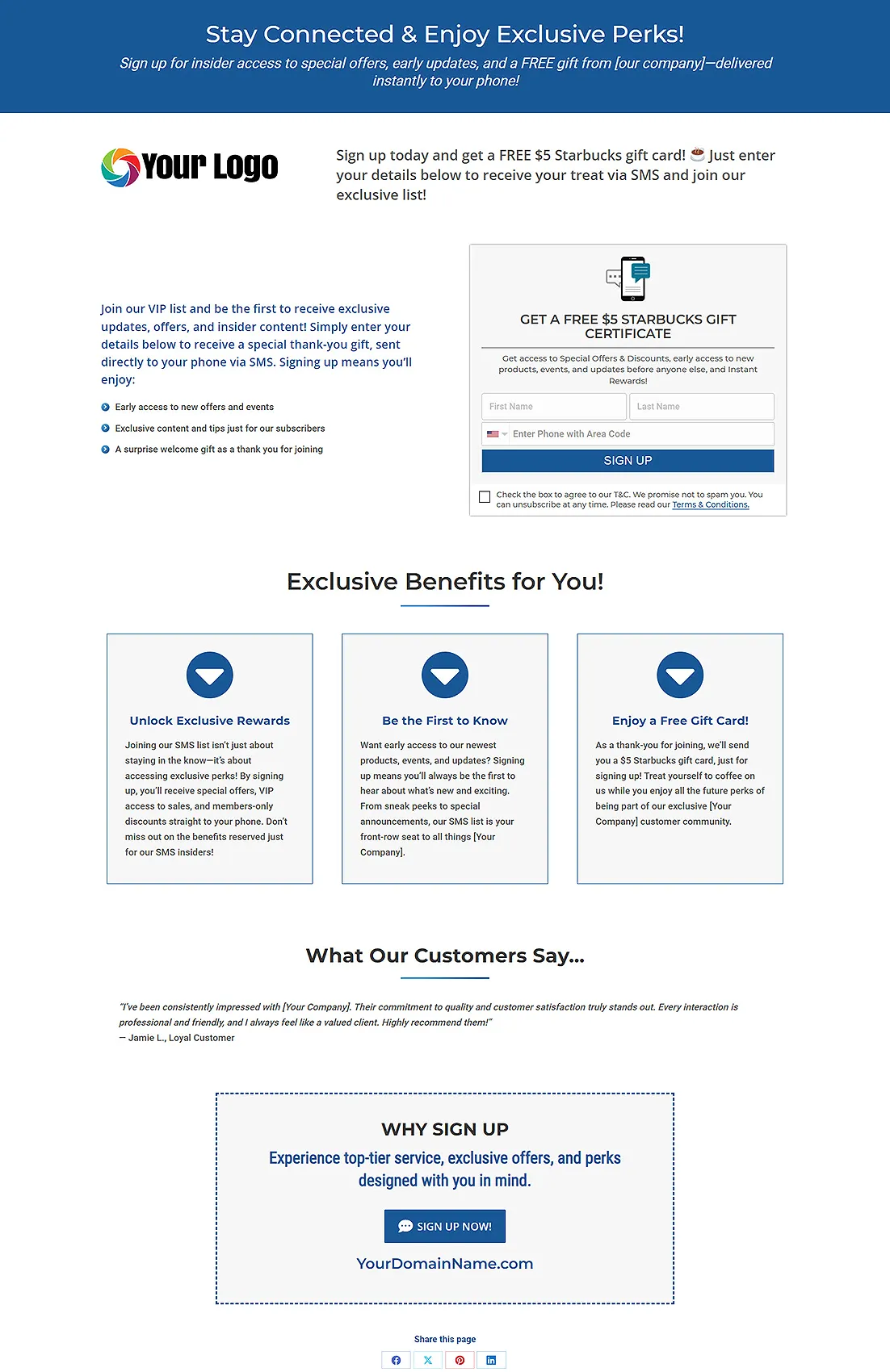 - SMS opt-in focused design